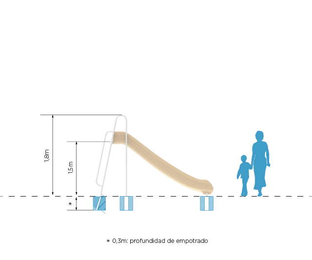 Este increíble tobogán combina velocidad y diversión, siendo el aliado perfecto para los pequeños aventureros que buscan juegos sin límites. Los niños suben los escalones de metal acercándose a la cima, donde podrán lanzarse en una emocionante carrera de descenso.