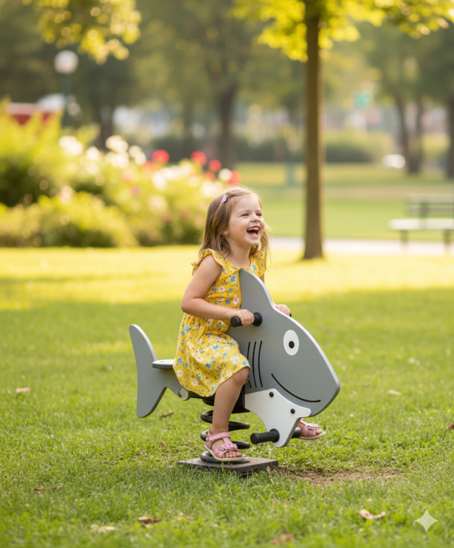 El Resorte Shark invita a vivir aventuras marinas en cada balanceo. Con su divertido diseño de tiburón azul, estimula la imaginación, el equilibrio y la coordinación. Fabricado en materiales resistentes, es ideal para plazas, jardines, escuelas y clubes.